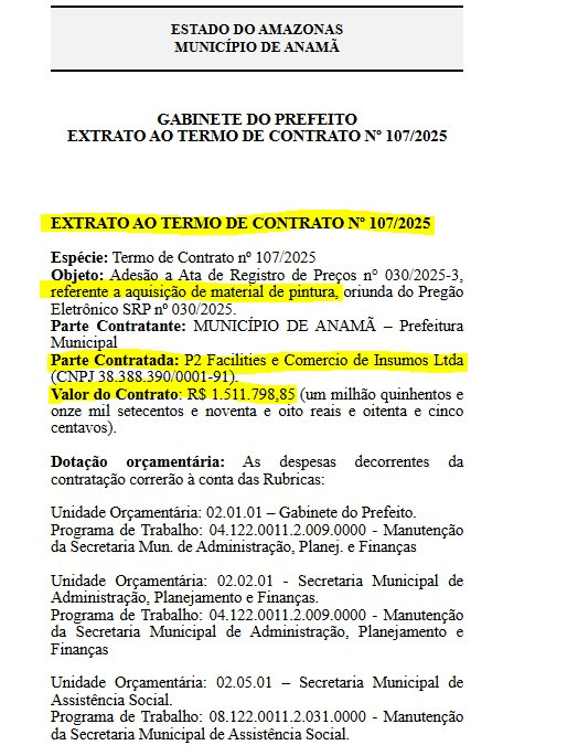 O que chama a atenção nesta contratação é a falta de informações sobre quais seriam esses materiais de pintura adquiridos pela Prefeitura de Anamã, quantidade de cada material ou o valor unitário dos mesmos, sem falar quais seriam os locais que receberiam o serviço de pintura.