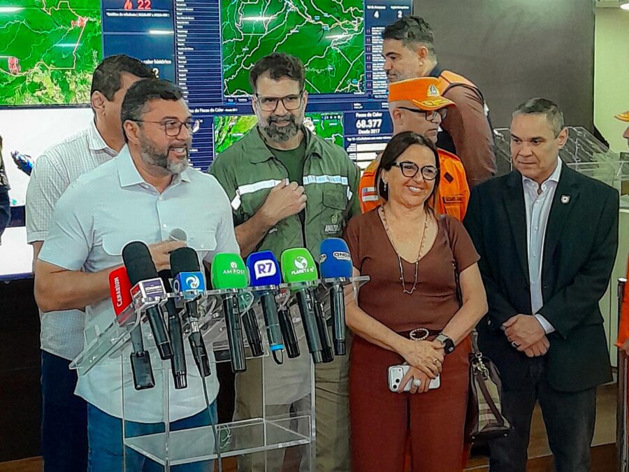 Durante o encontro, o governador Wilson Lima e o diretor-presidente do IPAAM, Gustavo Picanço, apresentaram dados importantes sobre o trabalho desenvolvido no estado, como a redução do desmatamento, o aumento dos postos do Corpo de Bombeiros e os prognósticos sobre o período da seca.