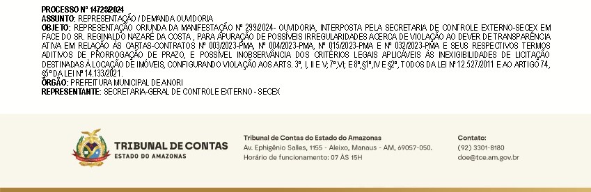 O prefeito Reginaldo Nazaré da Costa, o “Régis Nazaré” (Republicanos), entrou na mira do Tribunal de Contas do Estado do Amazonas (TCE-AM), por conta de irregularidades cometidas por ele por conta da falta de transparência em sua gestão à frente da Prefeitura de Anori, interior do Amazonas.