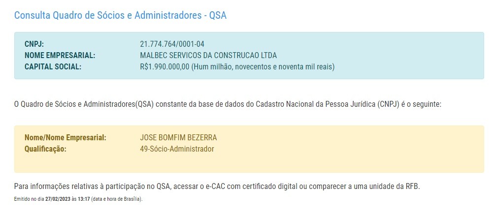 Conforme a publicação no Diário Oficial dos Municípios (DOM), a empresa que está localizada na Rua Edison Bezerra Vasconcelos, n.º 10, sala 1, bairro Centro de Novo Airão, e que vai realizar a obra é a Malbec Serviços da Construção LTDA, inscrita no CNPJ; 21.774.764/0001-04, tem como nome fantasia Construtora Malbec, e atua no ramo de comércio varejista de construção em geral.