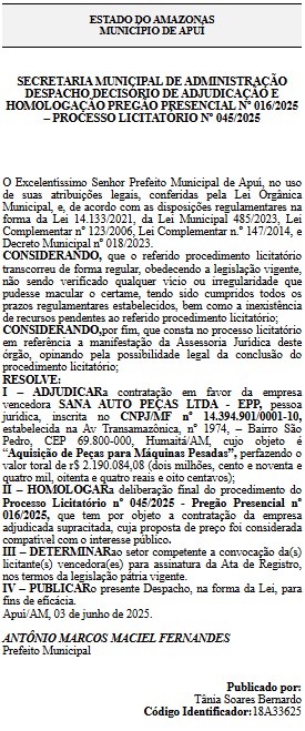 O prefeito Antônio Marcos Fernandes, mais conhecido como “Marquinhos da Macil” (MDB), vai gastar mais de R$ 2,1 milhões na compra de peças para máquinas pesadas para a Prefeitura de Apuí, no interior do Amazonas.