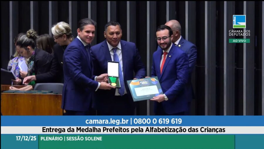 O prefeito de Japurá Vanilso Monteiro (UB), recebeu nesta quarta-feira (16/12), a Medalha Prefeitos pela Alfabetização das Crianças, no Plenário da Câmara dos Deputados, em Brasília.