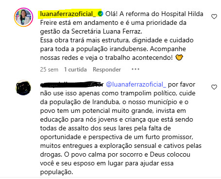 As UBS seguem em situação de precariedade, o hospital municipal enfrenta infraestrutura péssima, falta de medicamentos, demora no atendimento e reclamações constantes da população, que convive diariamente com o abandono da gestão de Augusto Ferraz e de sua esposa, Luana Ferraz, responsável pela Secretaria Municipal de Saúde e, ao mesmo tempo, pré-candidata a deputada estadual.