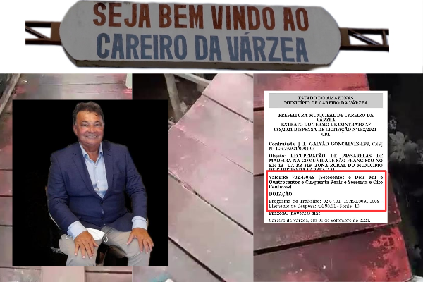 Após o prefeito Pedro Guedes, contratar empresa pelo valor de R$ 702.450,68 setecentos e dois mil e quatrocentos reais para construir uma passarela de madeira na comunidade de São Francisco, no km 13 da BR-319, no município de Careiro da Várzea, moradores denunciaram ao portal O Abutre, que a ponte está caindo aos pedaços.