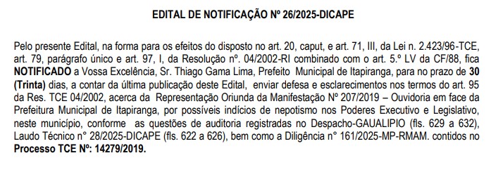 O Tribunal de Contas do Estado do Amazonas (TCE-AM) vai investigar as denúncias de nepotismo dentro da administração municipal de Itapiranga.