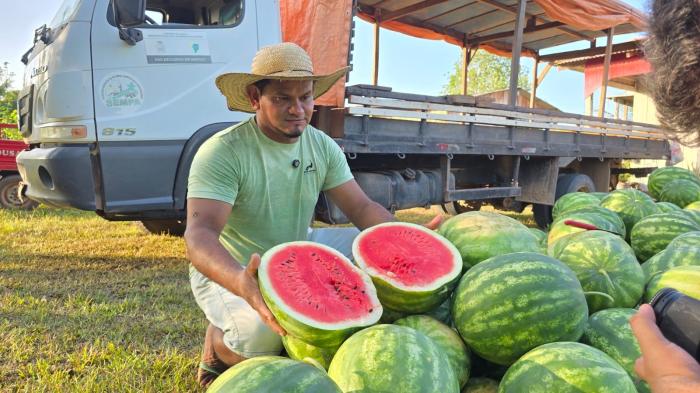 Do semeio à colheita, foram 75 dias de cultivo de melancia com acompanhamento técnico da Prefeitura de Parintins. O produtor Jairison Tavares Pereira, o Pico, da comunidade Santo Antônio do Murituba, cultivou a variedade de melancia híbrida Colt, para oferecer frutos de qualidade com média de até 15 quilos, com preços acessíveis aos consumidores. A comercialização acontece no Mercado Municipal Zezito Assayag, na Rua Paraíba, desde a manhã de quinta-feira, 25 de setembro.