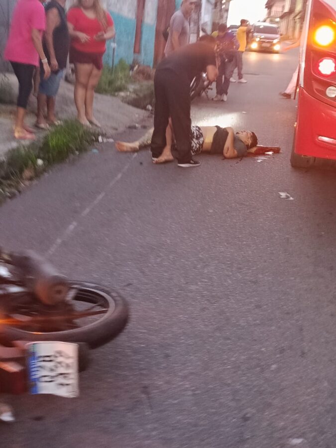 O motociclista Yan Figueiredo Carvalho ficou gravemente ferido e teve o braço amputado em um acidente chocante na tarde desta segunda-feira (28/07) na rua Y, bairro Nova Esperança, zona Oeste de Manaus. A vítima caiu da moto após tentar desviar de um buraco na via e foi atingida por um ônibus de rota que passava pela rua.