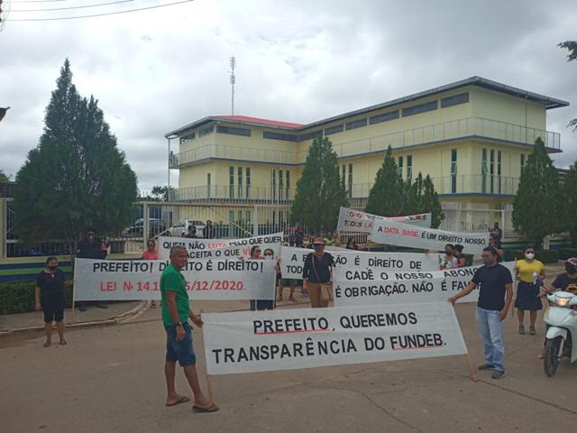 Interior- Na tarde desta sexta-feira (19), professores da rede de Lábrea, na calha do Purus, realizaram manifestação exigindo que o prefeito, Gean Barros e a Secretaria de Educação, informem os gastos com a educação no município, as sobras do Fundeb e o rateio dessas sobras para os profissionais da área.