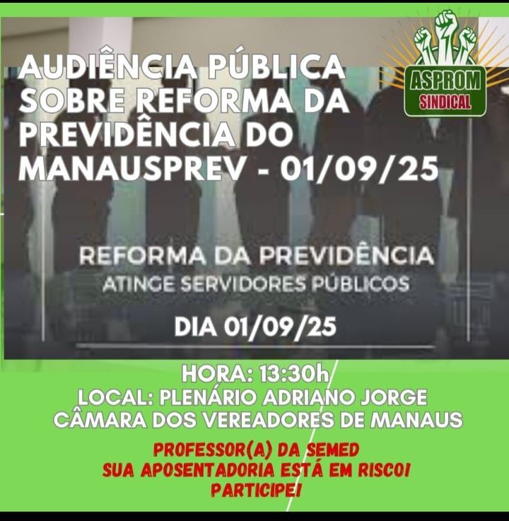 O Sindicato dos Professores e Pedagogos de Manaus (AspromSindical) denunciou nesta semana que a Prefeitura de Manaus apresentou à Câmara Municipal um Projeto de Lei que pode retirar a aposentadoria especial dos servidores da Educação e ainda impor novas dificuldades para a aposentadoria de todos os funcionários públicos da administração municipal.