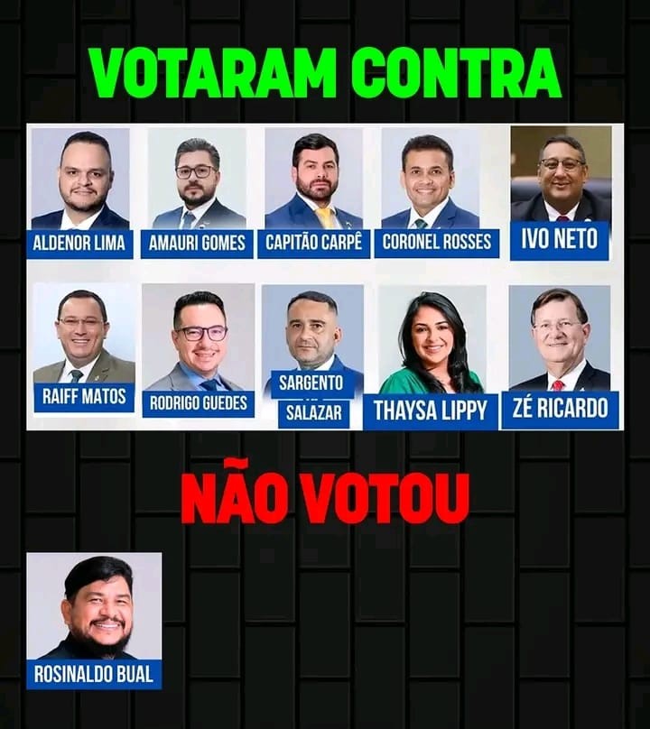 Dos 40 vereadores presentes, 10 votaram contra a proposta, e apenas o parlamentar Rosinal Bual esteve ausente por estar preso, os demais parlamentares votaram a favor da proposta de David Almeida.