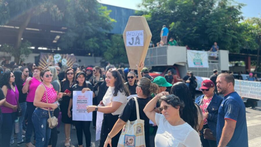 Enquanto os vereadores votavam a favor do “projeto da maldade” do prefeito David Almeida, os professores da rede municipal de ensino protestavam contra a PL que atinge diretamente a categoria.