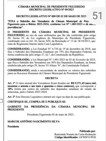 A população em Presidente Figueiredo está revoltada com a Proposta de Lei da Câmara Municipal de Vereadores, que aumentaram seus próprios salários para o valor de R$ 9.371,45 (nove mil, trezentos e setenta e um reais e quarenta e cinco centavos).