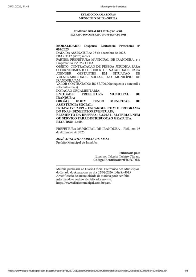 Às vésperas de uma eleição onde a sua esposa, Luana Ferraz, é pré-candidata ao cargo de deputada estadual, o prefeito Augusto Ferraz (UB), vai gastar R$ 490 mil reais em ‘dentaduras’ para distribuir para o povo de Iranduba.