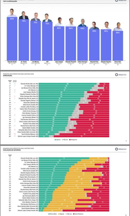 Analistas associam o desgaste da gestão a críticas recorrentes relacionadas à infraestrutura urbana, qualidade dos serviços públicos e à condução política da cidade. O desempenho negativo contrasta com o cenário de outros prefeitos de capitais que despontam como lideranças políticas com projeção estadual e nacional.