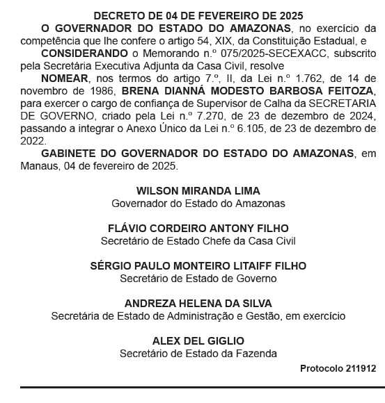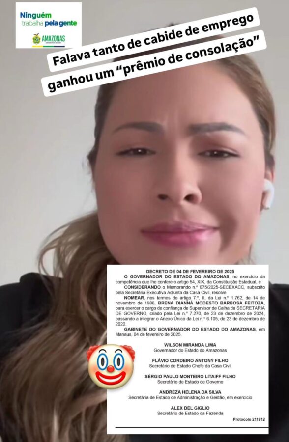 Brena Dianná foi nomeada para o cargo de supervisor de calha, na Secretaria de Governo, uma cargo que não tem um trabalho específico, apenas mais um penduricalho para apoiar políticos desempregados.