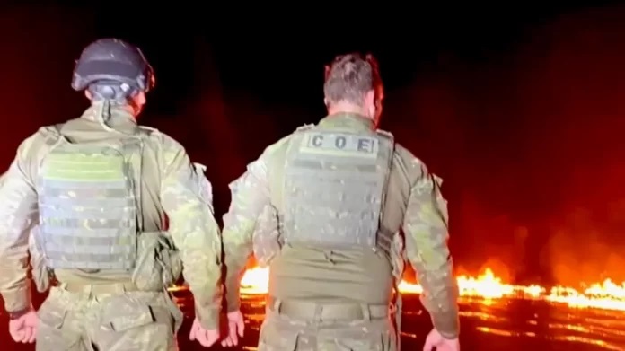 Os agentes entraram em confronto com os suspeitos. Durante o confronto, a lancha dos criminosos pegou fogo. O material foi descartado no rio e durante as buscas, 913 quilos de skunk foram apreendidos, além de um fuzil calibre 556.