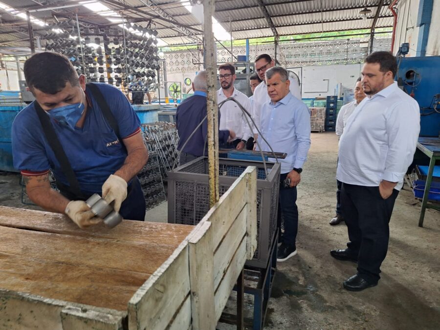 A Suframa realizou, nesta quinta-feira (11), uma visita às instalações da A. Fontes Revestimento em Metais Ltda., localizada no bairro Distrito Industrial, zona Sul de Manaus. A ação teve como objetivo conhecer de perto o funcionamento de um elo importante para a cadeia produtiva do Polo de Duas Rodas: o setor de galvanoplastia e tratamento de metais.