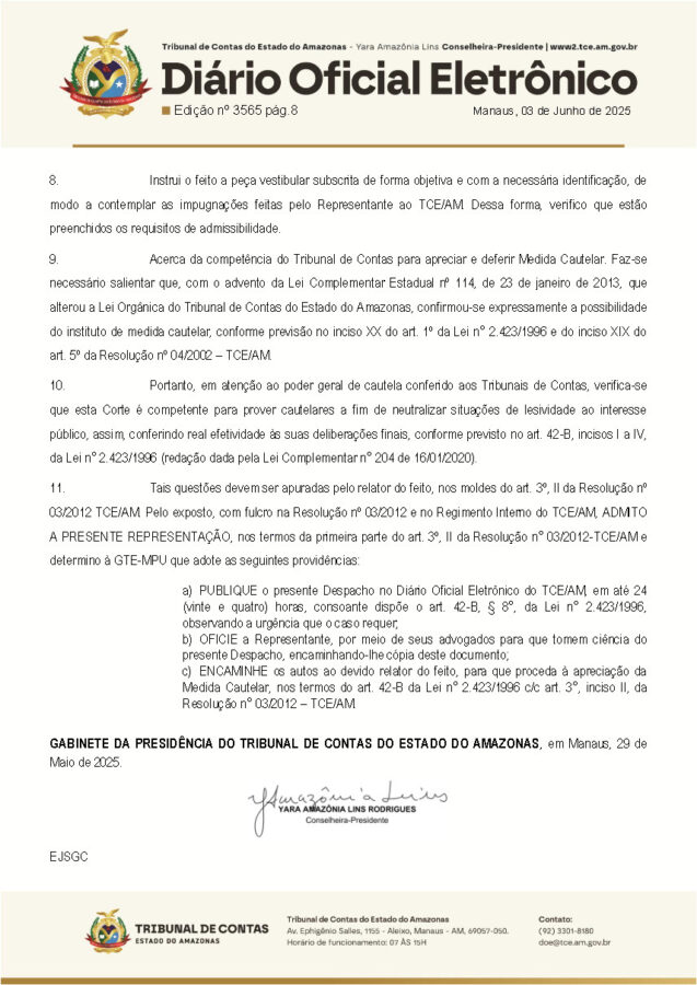 De acordo com o documento, a ausência de informações sobre os gastos da primeira etapa da obra, foi o pontapé para que o TCE-AM acatasse o pedido de medida cautelar contra o ex-prefeito.