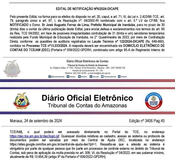 Em decorrência a proximidade das eleições, o prefeito Augusto Ferraz, contratou pelo menos 31 servidores temporários utilizando de forma irregular o Fundo Municipal de Educação, o que ligou um aleta no Tribunal de Contas do Estado do Amazonas (TCE-AM), que notificou o gestor municipal para apurar as possíveis irregularidades.