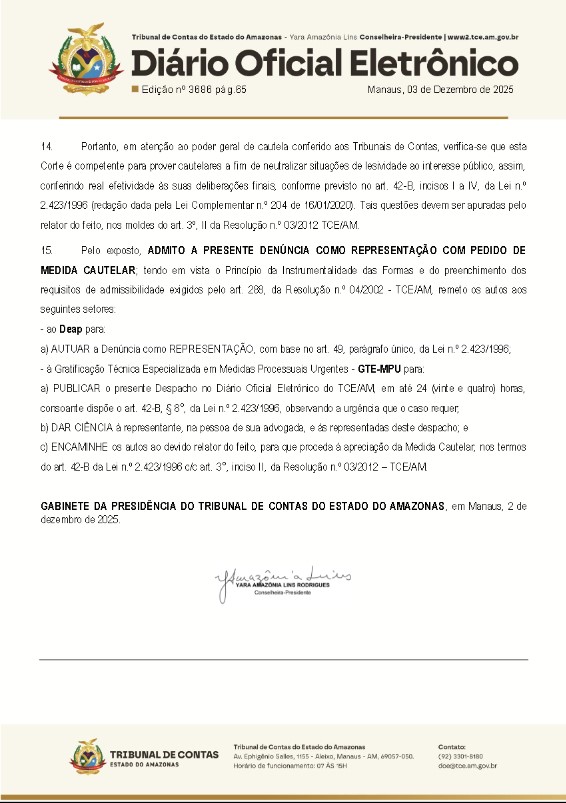 O órgão de contas vai investigar as possíveis irregularidades e já acatou o pedido de representação com medida cautelar contra o prefeito Marcos Martins e a Prefeitura de Uarini.