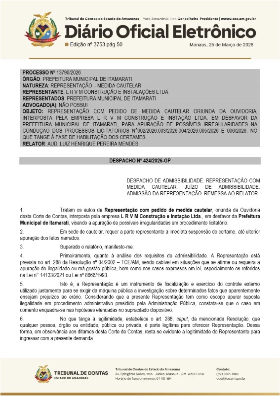 O Tribunal de Contas do Estado do Amazonas (TCE-AM) suspendeu processos licitatórios por suspeitos de irregularidades na Prefeitura de Itamarati, no interior do Amazonas.