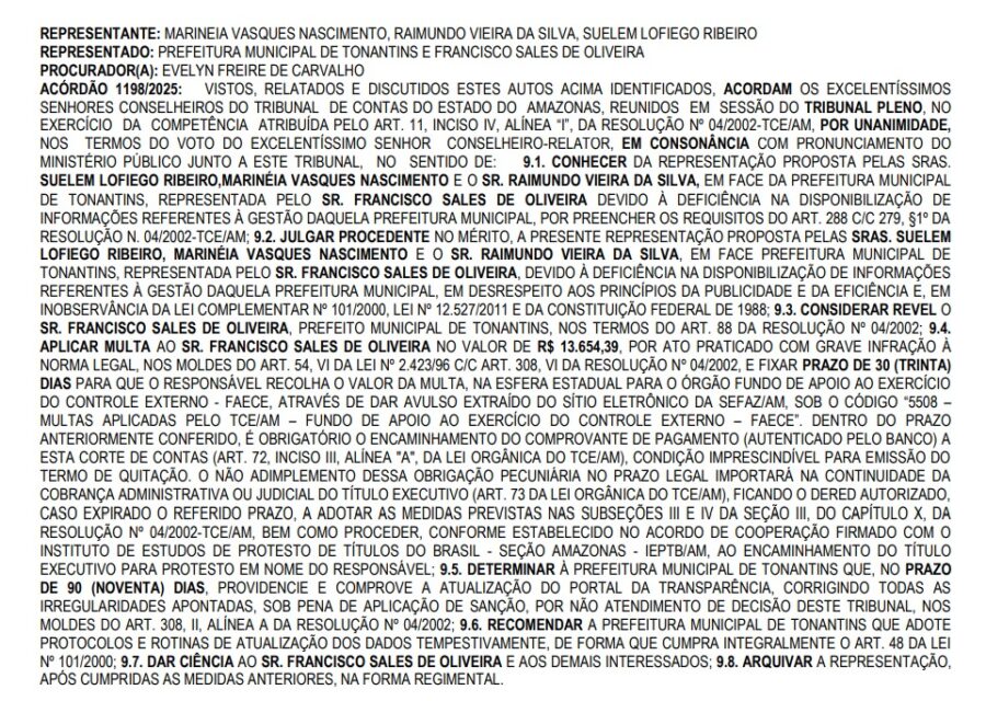 TCE-AM vai investigar o prefeito de Tonantins por suspeita de empregar funcionários fantasmas e esconder dados do Portal da Transparência do município