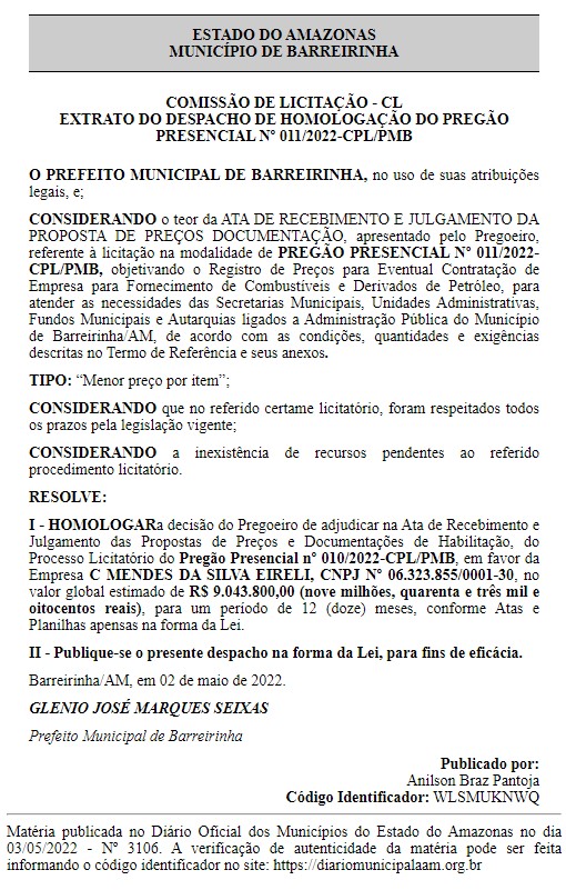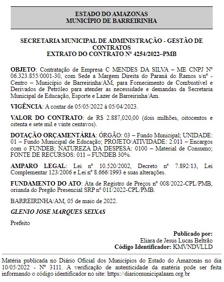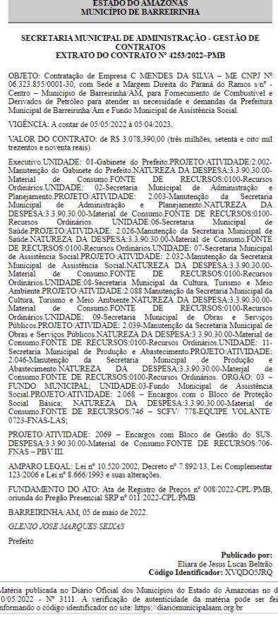 O Tribunal de Contas do Amazonas (TCE-AM), deve investigar contratos da prefeitura de Barreirinha, por suspeitas de superfaturamento na compra de combustíveis e derivados de petróleo, feitas pelo prefeito Glênio Seixas.