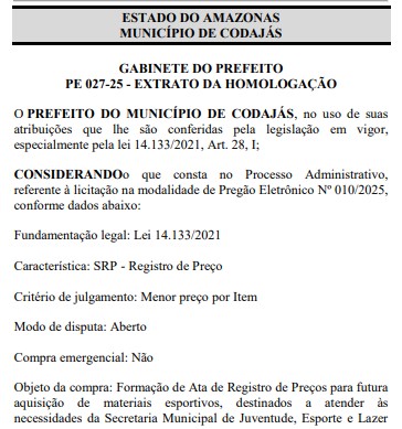 O prefeito Antônio Ferreira dos Santos, mais conhecido como “Tonho Santos ” (UB), vai gastar mais de R$ 1,1 milhão na compra de material esportivo para atender as necessidades da Prefeitura Municipal de Codajás no interior do Amazonas.