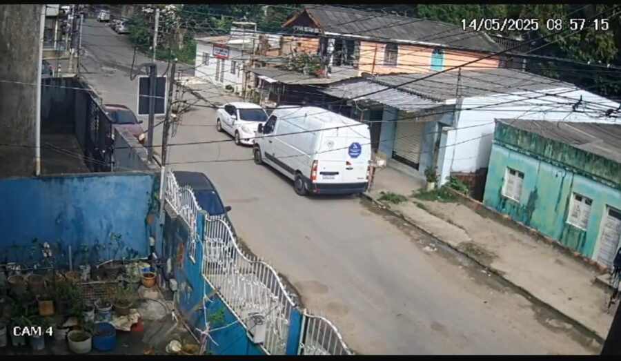 O crime ocorreu na rua Coronel Conrado, por volta das 14h, quando o veículo da empresa foi interceptado por seis criminosos armados. Imagens de câmeras de segurança registraram o momento em que os trabalhadores foram rendidos e colocados à força na parte traseira do próprio veículo da empresa.