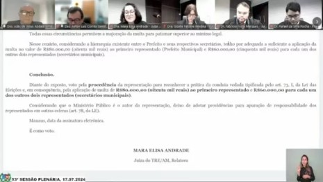 “Diante do exposto, voto pela procedência da representação para reconhecer a prática de conduta tipificada pelo art. 73. I, da Lei das Eleições e, em consequência, pela aplicação de multa”, escreveu na sentença a relatora do processo, juíza Maria Elisa Andrade.