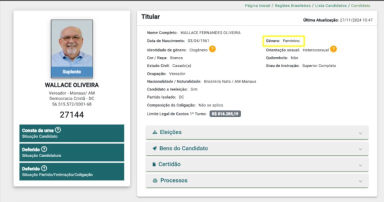 Além disso, o candidato pelo mesmo partido Wallace Oliveira, fraudou duas vezes a cota de gêneros, uma ao utilizar Joana Cristina França da Costa como candidata laranja, e outra ao se registrar com o gênero feminino.