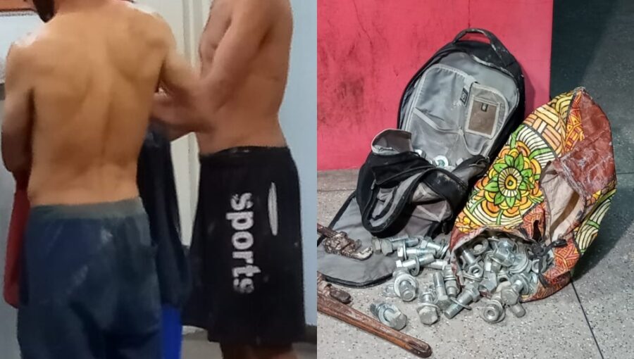 Dener Pantoja dos Santos e Evandro Honorato do Nascimento foram presos e um menor apreendido na tarde da última terça-feira (30), na avenida Natan Xavier, bairro Novo Aleixo, Zona Norte, após serem flagrados furtando placas de aço da Prefeitura de Manaus, em viaduto.