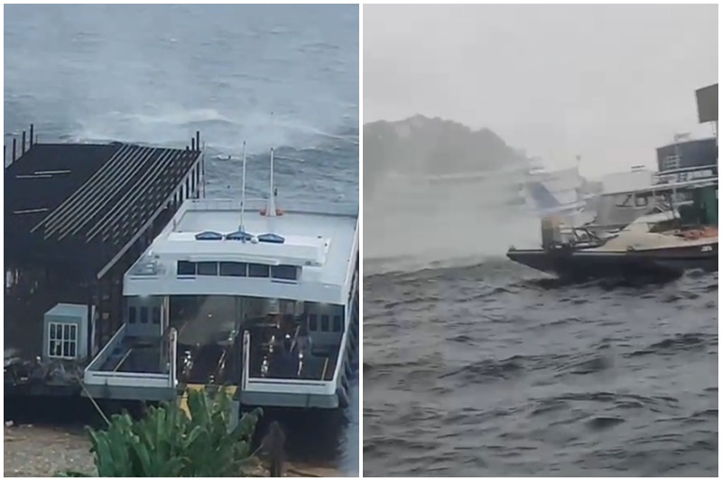 Um fenômeno conhecido como trmba d’água, foi registrado nesta quarta-feira (25/03), no Rio Negro, na orla do bairro de São Raimundo, zona Oeste da capital.