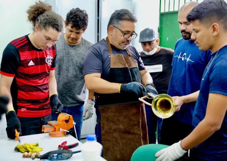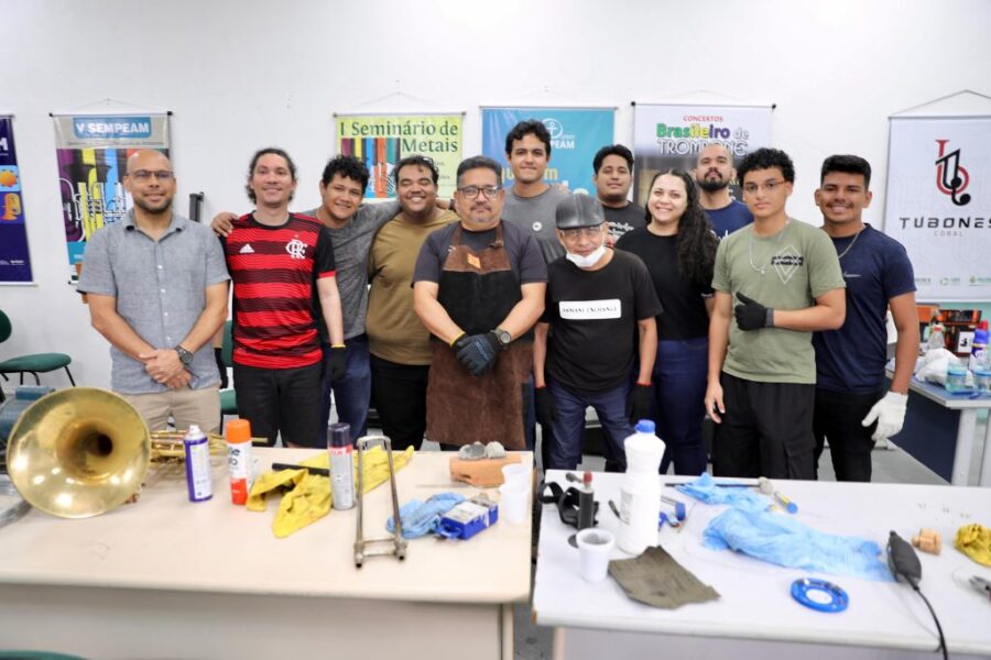 Pela primeira vez, a Universidade do Estado do Amazonas (UEA) ofereceu, em Manaus, o curso de lutheria voltado para instrumentos musicais de metais – uma iniciativa inédita tanto na capital amazonense quanto na própria instituição. Ofertada por meio do Programa de Atividades Consolidadas na Área Musical (Praticamus/UEA), projeto do Laboratório de Pesquisa, Práticas e Ensino Musical (Lapem/UEA), a formação conta com 10 participantes, sendo eles da comunidade acadêmica e músicos de bandas locais, e finaliza no dia 12 de julho, na Escola Superior de Artes e Turismo (Esat/UEA).
