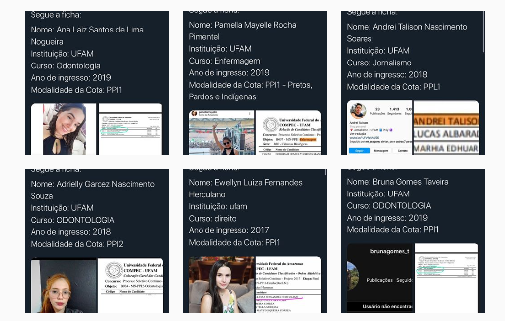 O perfil divulgou alguns nomes que são acusados de declararem no ato da inscrição fraudes para o ingresso na Universidade. Já foram mais de 30 que tiveram o nome divulgado pela página. O Ministério Público Federal juntamente com a UFAM devem abrir um inquérito de investigação sobre as denúncias que foram feitas.