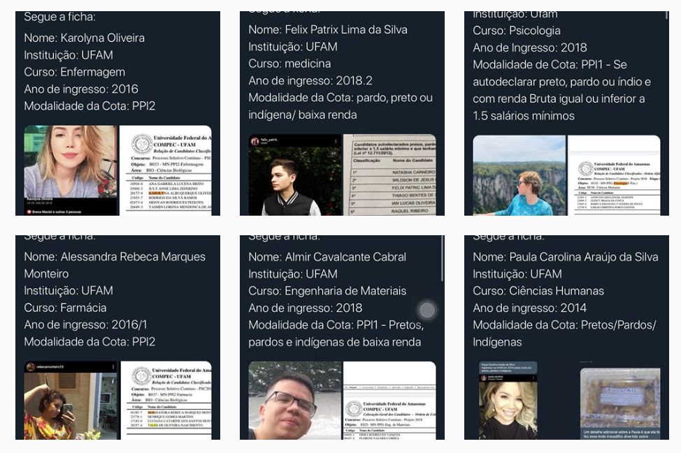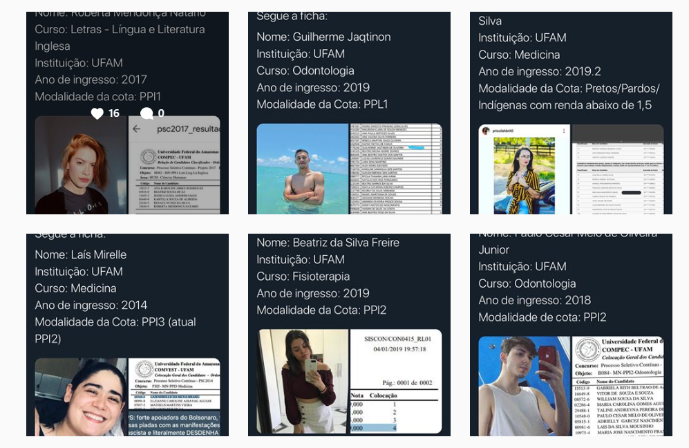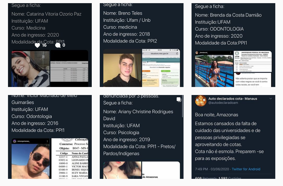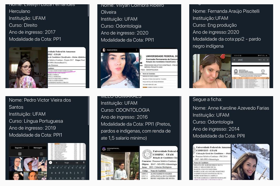 Durante a madrugada desta quinta-feira (4), um perfil no twitter e instagram foram criados para expor alunos da Universidade Federal do Amazonas (UFAM), que ingressaram através de cotas raciais, aqueles que se declaram pardos, índios ou pretos e de baixa renda, porém não se enquadram nas etnias e condições financeiras declaradas.