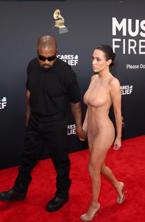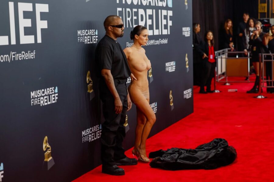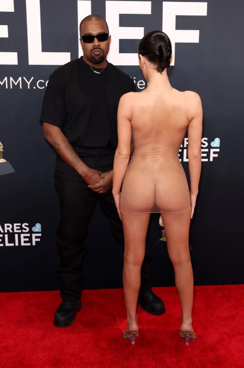 Kenye concorria a categoria Melhor Música de Rap com seu hto ‘Carnival’, uma produção em parceria com Ty Dollas Sign, chegou com sua esposa, a modelo e arquiteta Censori, com um vestido pra lá de provocante.