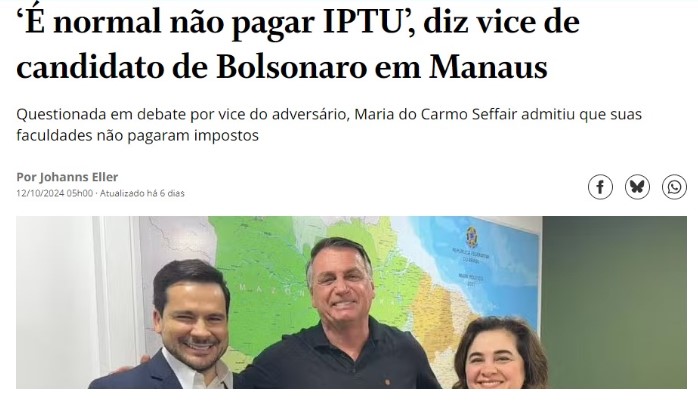 Para quem não lembra, Maria do Carmo não pagava o Imposto Territorial Urbano (IPTU), tendo uma dívida de R$ 8,7 milhões em suas empresas. Ela mesmo confirmou sua dívida e chegou a ironizar a situação.
