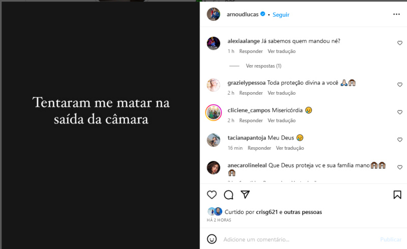 Ao perceber que os homens tentariam contra sua vida, Arnold teria arrancado com o carro e fugido da dupla até a Delegacia Interativa de Polícia (Dip), onde registrou um Boletim de Ocorrência. A Polícia Civil do Amazonas deve utilizar imagens de câmeras de segurança para tentar identificar os suspeitos.