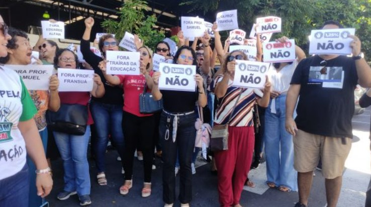 Os profissionais de educação passaram a gritar “FORA ALFAIA”, ao perceberem que o vereador estava debochando e gargalhando da situação em que se encontra a categoria.