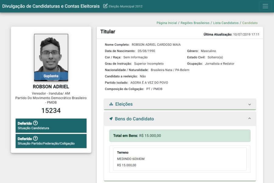 Nascido em Belém do Pará, o vice-prefeito de Iranduba Robson Adriel (Republicanos), é suspeito de enriquecimento ilícito e de ser funcionário fantasma durante anos, na Assembleia Legislativa do Estado do Amazonas (Aleam).