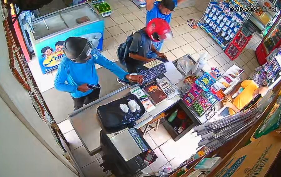 Dois homens armados invadiram e assaltaram na manhã desta terça-feira (02/12), um mercadinho localizado na Rua Rio Ati, bairro Gilberto Mestrinho, zona Leste de Manaus. A ação foi registrada por câmeras de segurança do estabelecimento.