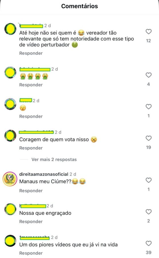 “Até hoje não sei quem é esse vereador. Só ganha notoriedade com vídeo perturbador”, escreveu outra internauta.