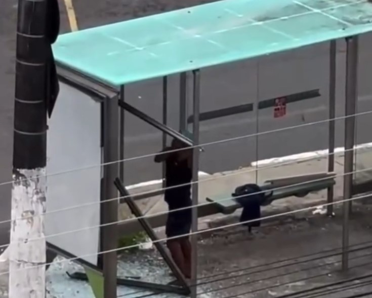 Um homem de nome desconhecido, foi flagrado neste domingo (26), quebrando uma parada de ônibus para levar peças de alumínio, na Avenida Pedro Teixeira, bairro Dom Pedro, zona Centro-oeste de Manaus.