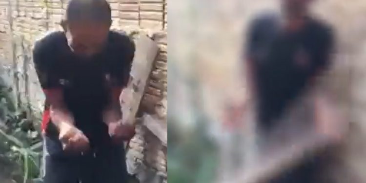Um vídeo do momento em que o homem era punido pelos criminosos, levando ripadas em suas mãos e pedindo perdão e chorando, e pedindo perdão a Deus por suas transgressões.