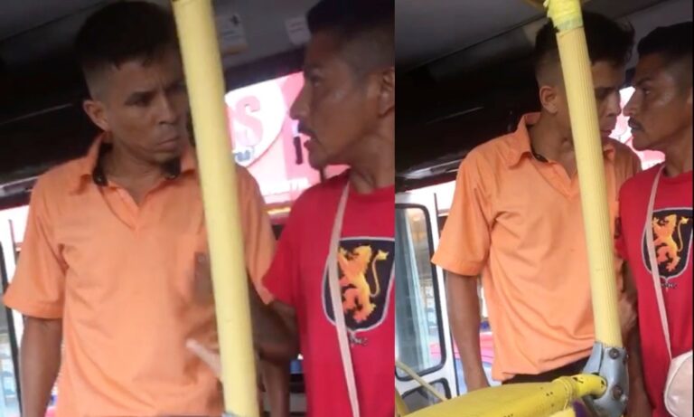O motorista teria informado que ambos deveriam pagar a pasaagem e nesse momento o homem passou a xingar o motora, que parou o coletivo e foi tomar satisfação com o passageiro.