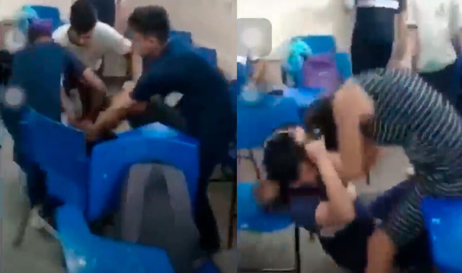 Um vídeo divulgados nas redes sociais, mostra o momento em que a mulher tira a satisfação com a puxa os cabelos da adolescente. Outros alunos que acompanham toda a situação correm para apartar a briga e retirar a mulher.