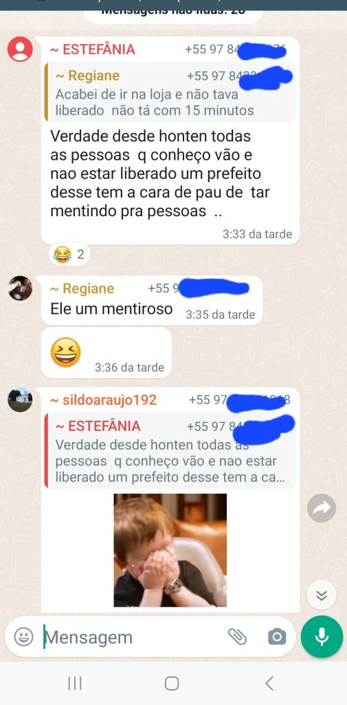 Segundo os populares, Raylan não mandou depositar os R$ 150 reais que são oferecidos à 1.500 famílias com vulnerabilidade social em Eirunepé. Até esta segunda-feira (14), o dinheiro não foi depositado nas contas das famílias, que começaram a reclamar das mentiras do prefeito em um grupo de compras nas redes sociais.