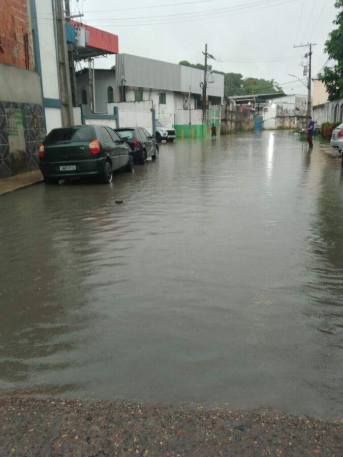 Na zona Sul de Manaus, a rua Magalhães Barata no bairro do Crespo, deixou a rua inundada e dificultando a passagem de pedestres e veículos.