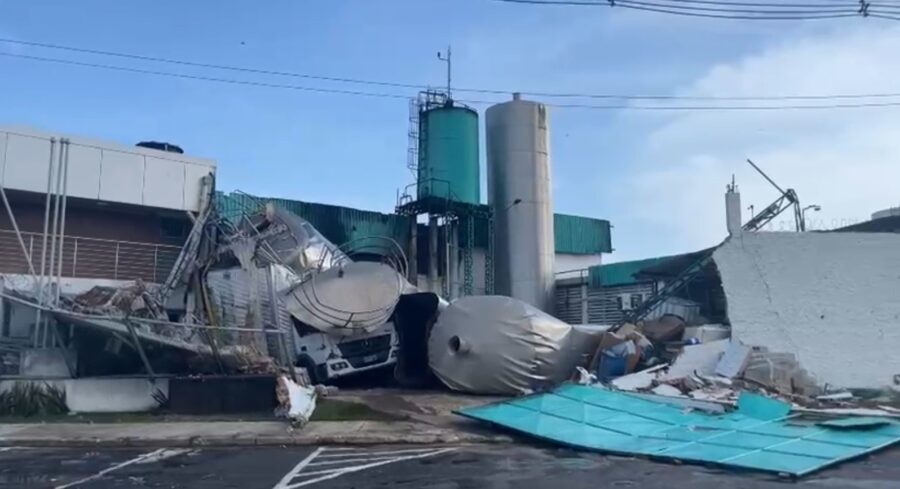 Dois tanques de inox que armazenavam vinagre, tombou nesta sexta-feira (14/11), na fábrica Virosas LTDA, na Avenida Compensa, bairro da Compensa, zona Oeste de Manaus.